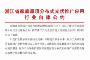 為踐行該《指南》在全省的推廣應(yīng)用,在省光伏創(chuàng)新聯(lián)盟主持下,晴天太陽(yáng)能、正泰安能、桑尼能源、福斯特光伏、浙基投新能源、維旺合縱、煜騰新能源、東方日升(點(diǎn)點(diǎn))、悅昇新能源共九家光伏企業(yè),根據(jù)《指南》條款,聯(lián)合簽署發(fā)布《浙江省家庭屋頂分布式光伏推廣應(yīng)用行業(yè)自律公約》,帶頭向社會(huì)公開承諾加強(qiáng)行業(yè)自律,共同維護(hù)我省家庭屋頂分布式光伏推廣應(yīng)用的市場(chǎng)秩序和良好發(fā)展!豆s》重點(diǎn)做出以下幾點(diǎn)承諾: