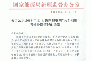 據(jù)新疆監(jiān)管辦官網(wǎng)消息:2019年1月2日,國(guó)家能源局新疆監(jiān)管辦印發(fā)《關(guān)于公示2018年11月份新疆電網(wǎng)“兩個(gè)細(xì)則”考核補(bǔ)償情況的通知》,通知及附件(光伏部分)如下: