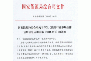 國家能源局印發(fā)《能源行業(yè)市場主體信用信息應(yīng)用清單(2018版)》