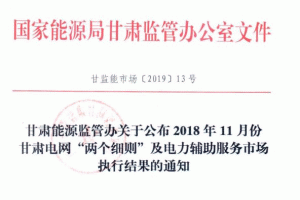 從甘肅能源監(jiān)管辦網(wǎng)站獲悉,甘肅能源監(jiān)管辦公25日印發(fā)關(guān)于公布2018年11月份甘肅電網(wǎng)“兩個(gè)細(xì)則”及電力輔助服務(wù)市場執(zhí)行結(jié)果的通知,就11月份甘肅電網(wǎng)“兩個(gè)細(xì)則”及電力輔助服務(wù)市場執(zhí)行結(jié)果公布如下: