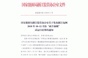 從浙江監(jiān)管辦獲悉:2月14日,國家能源局浙江監(jiān)管辦公室發(fā)布《浙江電網(wǎng)2018年10-12月份“兩個細(xì)則”試運(yùn)行結(jié)果的通知》。通知表示:10-12月份“兩個細(xì)則”試運(yùn)行結(jié)果公示期間,監(jiān)管辦公室未收到正式申述報告,根據(jù)“兩個細(xì)則”規(guī)定,現(xiàn)正式發(fā)布浙江電網(wǎng)2018年10-12月份“兩個細(xì)則”試運(yùn)行結(jié)果,請各有關(guān)企業(yè)據(jù)此通知,