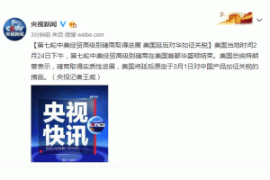 美國(guó)當(dāng)?shù)貢r(shí)間2月24日下午,第七輪中美經(jīng)貿(mào)高級(jí)別磋商在美國(guó)首都華盛頓結(jié)束。美國(guó)總統(tǒng)特朗普表示,磋商取得實(shí)質(zhì)性進(jìn)展,美國(guó)將延后原定于3月1日對(duì)中國(guó)產(chǎn)品加征關(guān)稅的措施。