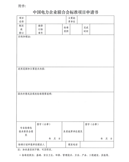 附件:中國電力企業(yè)聯(lián)合會標(biāo)準(zhǔn)項目申請書