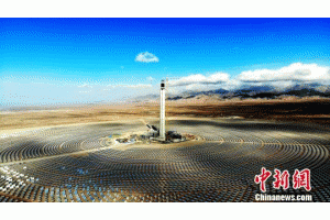圖為俯瞰中國首座商業(yè)化運(yùn)營光熱電站——中控太陽能青海德令哈塔式光熱電站。孫睿 攝