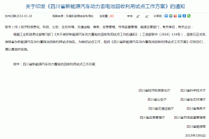 四川省新能源汽車動力蓄電池回收利用試點工作方案