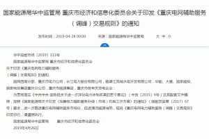 第四條 國家能源局華中監(jiān)管局(以下簡稱“華中能源監(jiān)管局”)會同重慶市經(jīng)信委對重慶電網(wǎng)電力輔助服務(wù)市場進(jìn)行監(jiān)督與管理,監(jiān)管本規(guī)則的實施。