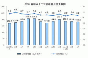 據(jù)今日國(guó)家統(tǒng)計(jì)局官網(wǎng)透露的數(shù)據(jù)顯示:4月份,電力生產(chǎn)有所放緩,清潔發(fā)電量占比上升。發(fā)電5440億千瓦時(shí),同比增長(zhǎng)3.8%,增速較上月回落1.6個(gè)百分點(diǎn);日均發(fā)電181.3億千瓦時(shí),比3月份減少2.5億千瓦時(shí)。1—4月份,發(fā)電2.2萬(wàn)億千瓦時(shí),增長(zhǎng)4.1%。