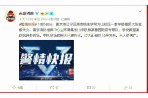 圖為6月5日10時40分,南京曉莊學院一教學樓頂太陽能板著火,明火已撲滅無人員傷亡。官微截圖中新網(wǎng)南京6月5日電 5日中午12時許,南京市消防救援支隊通報,南京曉莊學院一教學樓頂太陽能板著火,明火已撲滅,無人員傷亡! (jù)通報,6月5日10時40分,南京市江寧區(qū)南京曉莊學院方山校區(qū)一教學樓樓頂太陽能板失火,南京消防指揮中心立即調(diào)集