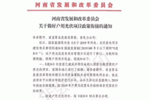 據河南省發(fā)改委6月5日發(fā)布《關于做好戶用光伏項目政策銜接的通知》,2019年5月30日之前已建成并網但未納入國家補貼范圍的戶用光伏項目,前期各地已進行了梳理,將就此類項目予以審核并進行公示,公示無異議后直接納入2019年財政補貼規(guī)模,按0.18元/千瓦時予以補貼。 通知如下:
