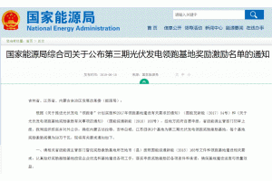 國(guó)家能源局綜合司關(guān)于公布第三期光伏發(fā)電領(lǐng)跑基地獎(jiǎng)勵(lì)激勵(lì)名單的通知