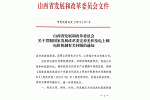 6月19日,山西省發(fā)改委官網(wǎng)發(fā)布《山西省發(fā)展和改革委員會關(guān)于貫徹國家發(fā)展改革委完善光伏發(fā)電上網(wǎng)電價機制有關(guān)問題的通知》,明確規(guī)定,省內(nèi)其他地區(qū)2019年新增集中式光伏電站指導(dǎo)價為0.55元/千瓦,納入國家可再生能源電價附加資金補貼目錄的村級光伏扶貧電站(含聯(lián)村電站)上網(wǎng)電價為0.85元/千瓦,此通知于7月1日起執(zhí)行。