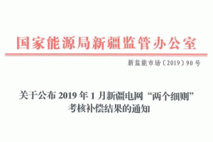 據(jù)新疆監(jiān)管辦官網(wǎng)發(fā)布的通知,根據(jù)規(guī)定,對(duì)2019年1月新疆電網(wǎng)“兩個(gè)細(xì)則”考核補(bǔ)償公示情況進(jìn)行復(fù)核,現(xiàn)將結(jié)果予以公布。請(qǐng)遵照?qǐng)?zhí)行。