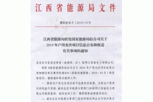 日前。江西省能源局印發(fā)通知,公布了2019年戶用光伏項目信息和報送事項,原文如下: