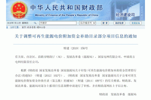 關(guān)于調(diào)整可再生能源電價(jià)附加資金補(bǔ)助目錄部分項(xiàng)目信息的通知