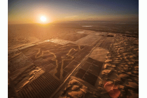 這座位于庫布其沙漠的太陽能電站,距離內(nèi)蒙古自治區(qū)的中國“煤城”鄂爾多斯只有一步之遙。電站“駿馬”圖的動物設(shè)計靈感來自該地區(qū)的養(yǎng)馬業(yè)和內(nèi)蒙古牧民的賽馬傳統(tǒng),該項目是庫布其一個太陽能主題旅游區(qū)的一部分,而庫布其又是當?shù)卣剿魃衬糜魏湍茉促Y源的一部分。