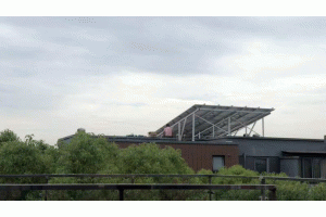 △從下方看起來,整塊電池板的寬度僅比491號別墅樓體寬度略小。