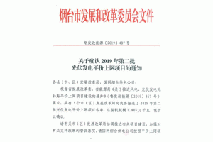 近日,煙臺發(fā)改委發(fā)布關(guān)于確認(rèn)2019年第二批光伏發(fā)電平價上網(wǎng)項目的通知,公布了第二批光伏發(fā)電平價上網(wǎng)項目名單,5個分布式項目列入名單。