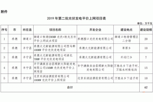 2019年第二批光伏發(fā)電平價上網(wǎng)項目名單如下表: