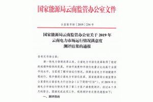 12月30日,國家能源局云南監(jiān)管辦公室發(fā)布關于2019年云南電力市場運行情況滿意度測評結果的通報。全文如下: