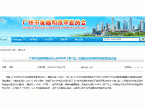 從廣州市發(fā)改委官網(wǎng)獲悉:日前,廣州市發(fā)改委發(fā)布《關(guān)于公示2019年(第二批)太陽能光伏發(fā)電項目補貼資金的公告》,其中,發(fā)電量補貼856戶/公司,合計補貼1405.6萬元,裝機容量補貼31家企業(yè),合計補貼1088.5萬元,總計2494.1萬元。公示期10個工作日。