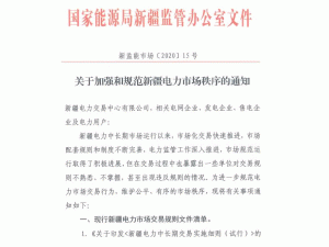 從新疆監(jiān)管辦官網(wǎng)獲悉:日前,國家能源局新疆監(jiān)管辦印發(fā)《關(guān)于加強和規(guī)范新疆電力市場秩序的通知》,發(fā)布現(xiàn)行新疆電力市場交易規(guī)則文件清單,強調(diào)近期維護新疆電力市場秩序須注意的事項,進(jìn)一步規(guī)范電力市場交易行為,維護公平有序的市場秩序。