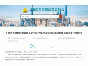 上海市發(fā)展和改革委員會關(guān)于做好2020年光伏發(fā)電項目建設(shè)有關(guān)工作的通知