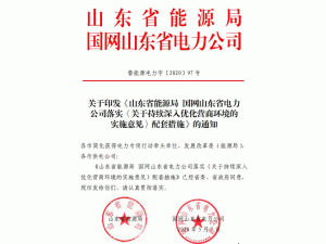 《山東省能源局 國網山東省電力公司落實〈關于持續(xù)深入優(yōu)化營商環(huán)境的實施意見〉配套措施》已經省委、省政府同意,現印發(fā)請認真貫徹落實。