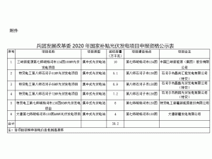 6月8日,新疆生產(chǎn)建設(shè)兵團(tuán)發(fā)展改革委發(fā)布《關(guān)于2020年國(guó)家補(bǔ)貼光伏發(fā)電項(xiàng)目申報(bào)資格的公示》,公示期為2020年6月9日至6月11日。
