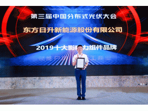 7月2日,第三屆中國分布式光伏大會(huì)在濟(jì)南召開,來自光伏行業(yè)的企業(yè)代表、資深行業(yè)分析專家等眾多光伏大咖齊聚一堂,針對最新光伏政策、技術(shù)創(chuàng)新等前瞻性話題進(jìn)行深入交流。作為A股光伏龍頭企業(yè),東方日升受邀出席本次大會(huì),并憑借高效優(yōu)質(zhì)產(chǎn)品與杰出的品牌影響力,榮獲“2019年中國分布式光伏十大影響力組件品牌”殊榮。