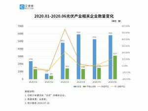 疫情原因,今年2月,光伏相關(guān)企業(yè)注冊量僅為737家,跌入近幾年來的低谷。不過,隨著二季度整個產(chǎn)業(yè)的回暖,4-6月新增注冊量均超過5000家,超越上年度3892家的月均值。二季度總注冊量達(dá)到2.5萬家,環(huán)比增長114%。