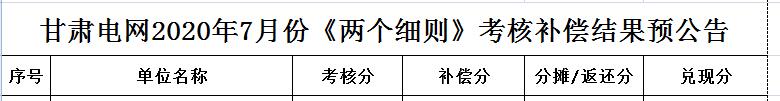 附件:甘肅電網(wǎng)2020年7月份“兩個細則”考核補償結(jié)果預(yù)公告