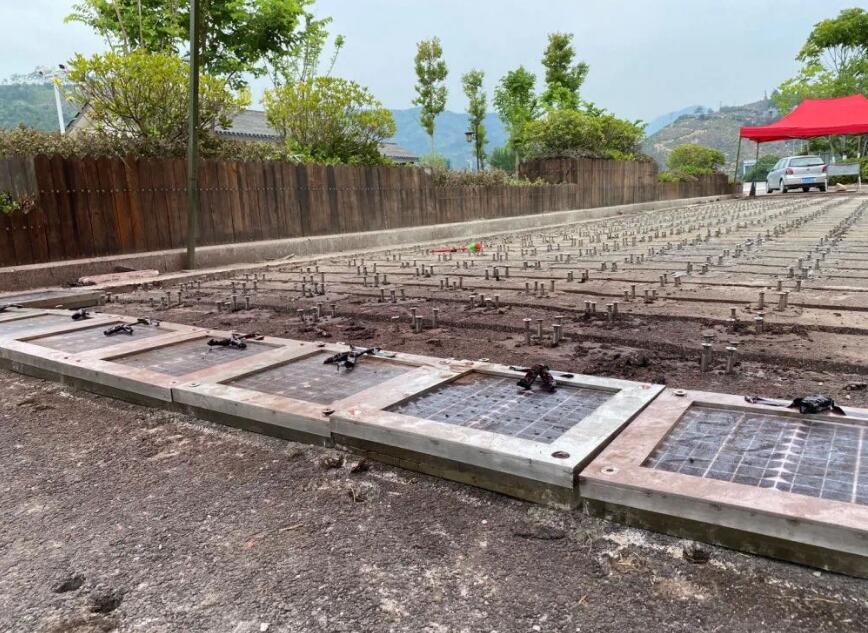 在福建永泰縣,工作人員正在對(duì)停車廠路面進(jìn)行光伏面板鋪設(shè)。微信公號(hào)“大美永泰” 圖