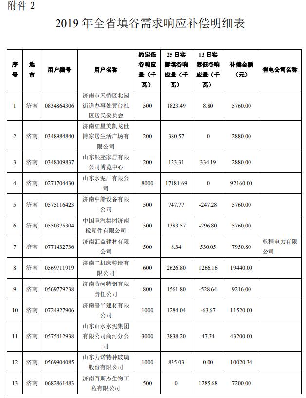 2.2019年全省填谷需求響應(yīng)補(bǔ)償明細(xì)表