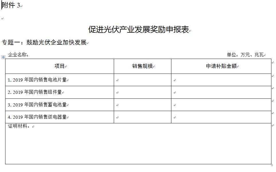 3.促進(jìn)光伏產(chǎn)業(yè)發(fā)展獎(jiǎng)勵(lì)專題申報(bào)表(附件3:專題一至專題三)及證明材料。
