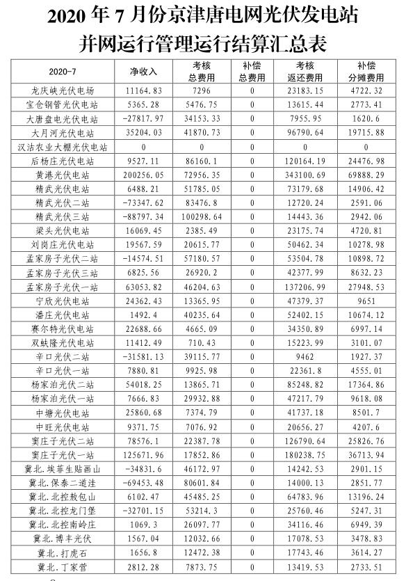 3.2020年7月份京津唐電網(wǎng)光伏發(fā)電站并網(wǎng)運(yùn)行管理運(yùn)行結(jié)算匯總表