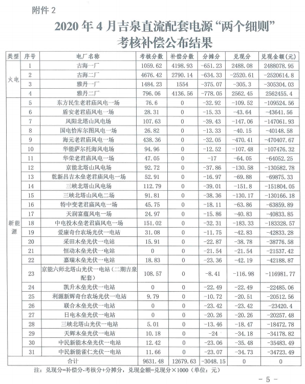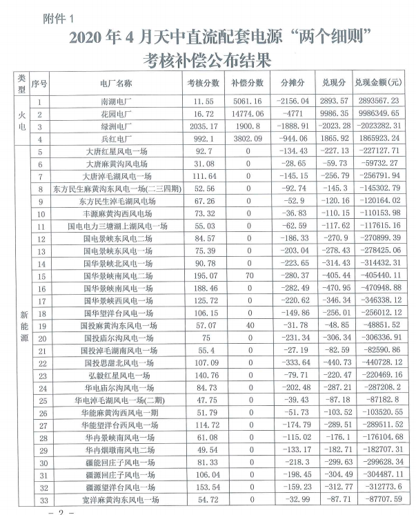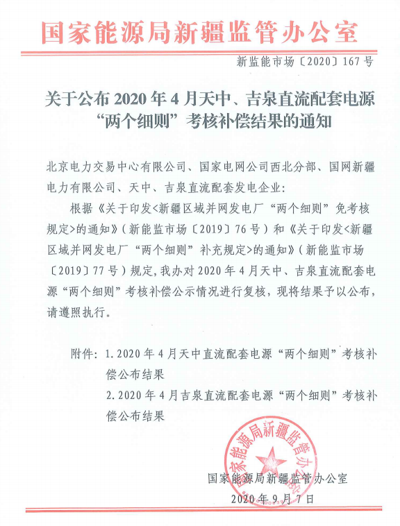 2020年4月天中、吉泉直流配套電源“兩個(gè)細(xì)則”考核和補(bǔ)償結(jié)果