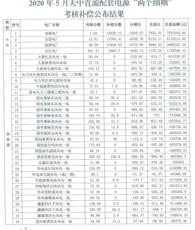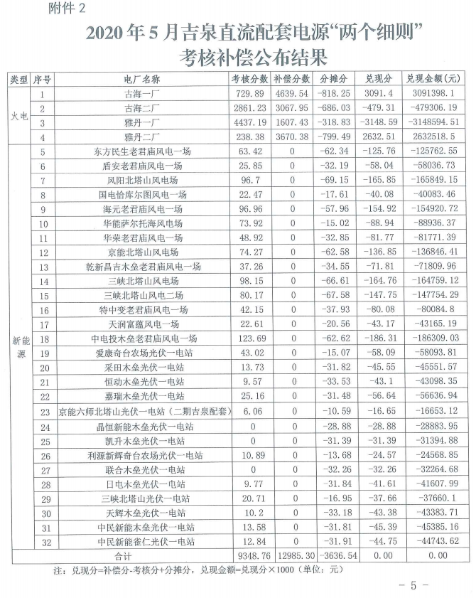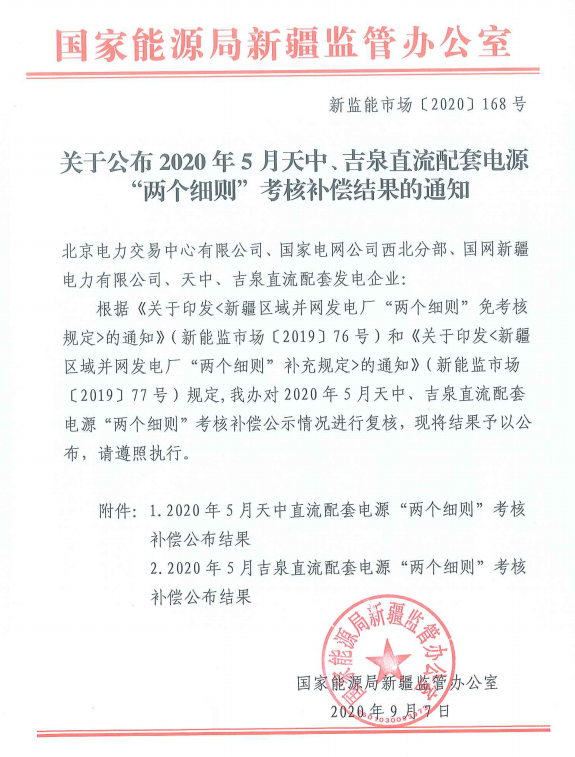 2020年5月天中、吉泉直流配套電源“兩個細則”考核和補償結(jié)果公布