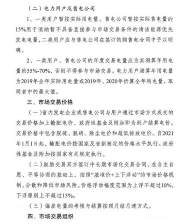 《通知》提出,為了適應(yīng)國家推出清潔能源消納配額的要求,明確一類用戶暫按實際用電量、售電公司暫按實際售電量的15%用于消納暫不具備直接參與市場交易條件的清潔能源優(yōu)先發(fā)電電量。