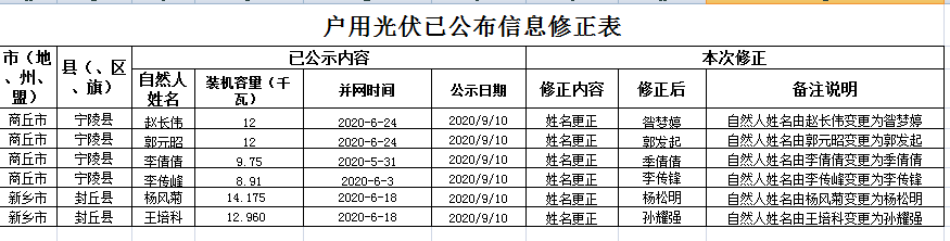 附件3:河南省2020年8月戶用光伏項(xiàng)目已公布信息修正表.xlsx