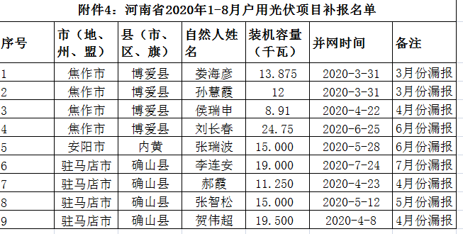附件4:河南省2020年1-8月戶用光伏項(xiàng)目補(bǔ)報(bào)名單.xls