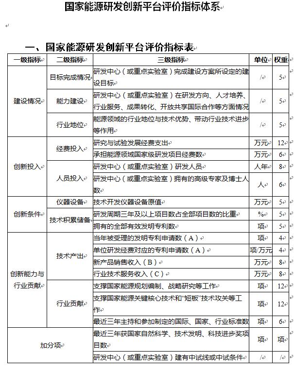 (三)國家能源局組織專家或委托第三方機構(gòu),按照公開、公平、公正、透明的原則,對申請材料進行審查和評審,按照能源創(chuàng)新平臺考核指標體系(附件2)進行評價,并可以開展實地核查;