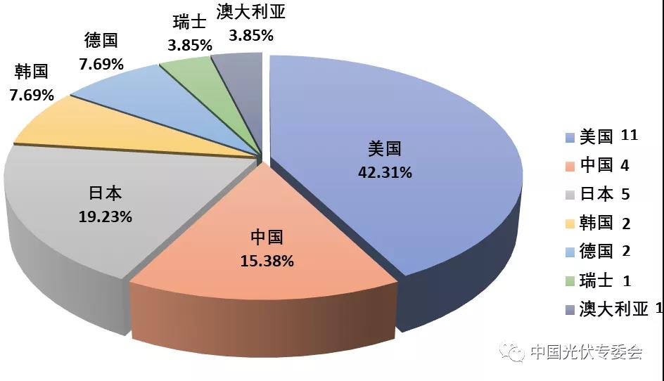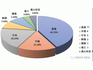 世界太陽電池效率紀錄各國占比情況