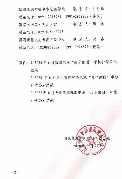 2020年6月新疆電網(wǎng)“兩個細(xì)則”考核補(bǔ)償結(jié)果(光伏)公示