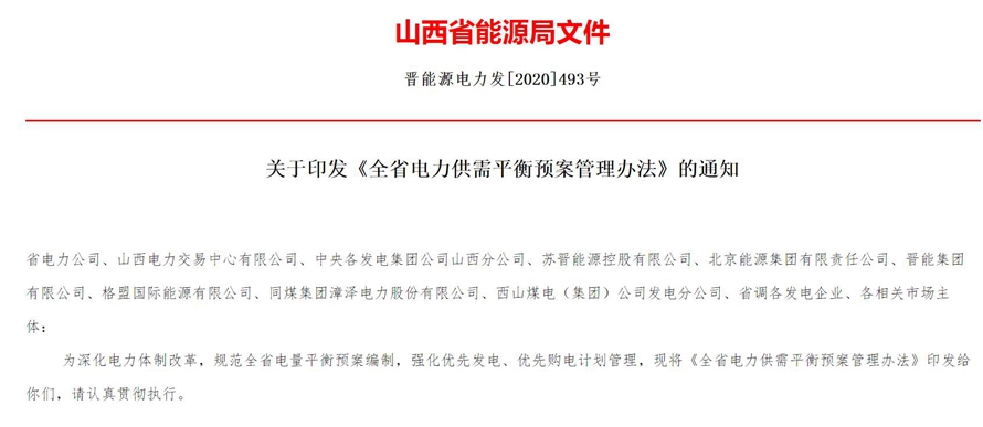 山西省能源局近日印發(fā)《全省電力供需平衡預(yù)案管理辦法》,明確提出堅持可再生能源發(fā)電優(yōu)先,落實可再生能源發(fā)電保障性收購政策,鼓勵可再生能源發(fā)電企業(yè)參與市場交易。