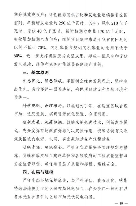 《規(guī)劃》進(jìn)一步明確:新增可再生能源發(fā)電裝機(jī)容量1090千瓦,其中,風(fēng)電790萬千瓦、光伏發(fā)電300萬千瓦,形成有效投資約700億元,2020年內(nèi)開工建設(shè)一批項(xiàng)目,力爭2021年底項(xiàng)目分期分批建成投產(chǎn)。