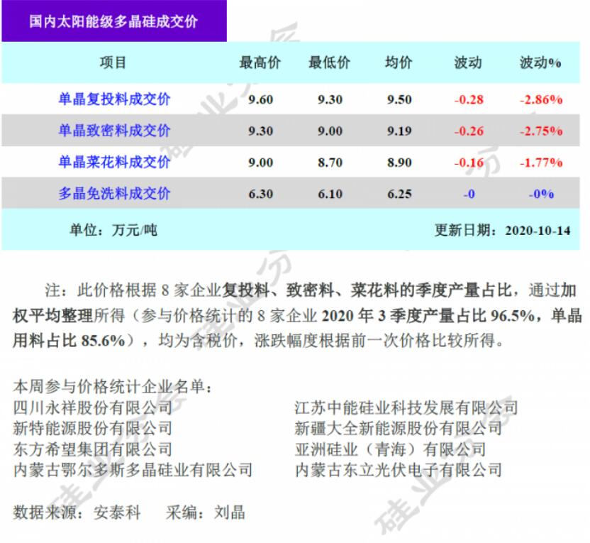 從實際產出和需求來看,硅料供應略有不足,但考慮到9月份上下游僵持不簽單的情況已導致部分下游庫存向上游轉移,故預計10月份硅料整體供需基本平衡。在市場供需平衡的大背景下,上下游博弈持續(xù),部分不具規(guī)模優(yōu)勢的企業(yè)仍有繼續(xù)被迫降價的風險,多晶硅價格跌幅則取決于規(guī)模優(yōu)勢相對較大的一線上下游企業(yè)之間的博弈程度。