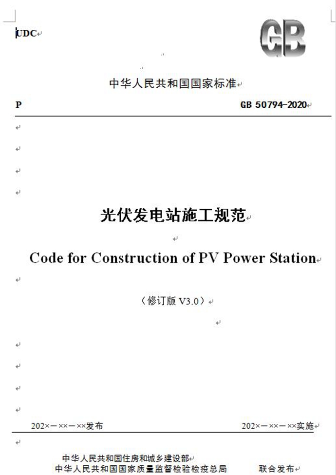 從中電聯(lián)獲悉:10月15日,中電聯(lián)印發(fā)標(biāo)準(zhǔn)《光伏發(fā)電站施工規(guī)范》征詢專家意見函,再次就《光伏發(fā)電站施工規(guī)范》最新修訂版本征詢修改意見,為提交審查做好準(zhǔn)備。由協(xié)鑫能源工程有限公司牽頭編制的中電聯(lián)標(biāo)準(zhǔn)《光伏發(fā)電站施工規(guī)范》(以下簡(jiǎn)稱:標(biāo)準(zhǔn)),于2020年6月以視頻會(huì)議形式通過了標(biāo)準(zhǔn)送審稿的審查。按中電聯(lián)標(biāo)準(zhǔn)編制工作程序,協(xié)鑫能源工程有