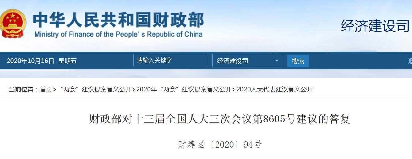 以下為財政部對十三屆全國人大三次會議第8605號建議的答復(fù)全文: