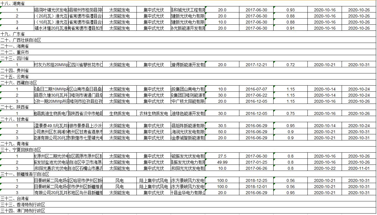 10月23日,國(guó)家電網(wǎng)公示了最新一批的可再生能源發(fā)電補(bǔ)貼項(xiàng)目清單,共計(jì)63個(gè)太陽(yáng)能發(fā)電、風(fēng)電、生物質(zhì)發(fā)電項(xiàng)目,涉及河北(4)、山西(1)、江蘇(2)、遼寧(1)、浙江(10)、安徽(1)、江西(1)、山東(16)、河南(9)、湖南(4)、四川(1)、西藏(3)、陜西(1)、