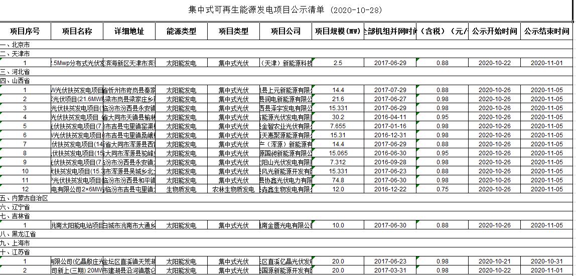 10月28日,國家電網(wǎng)公示新一批集中式可再生能源發(fā)電項(xiàng)目補(bǔ)貼名單,公示結(jié)束時(shí)間11月5日。 詳情如下: